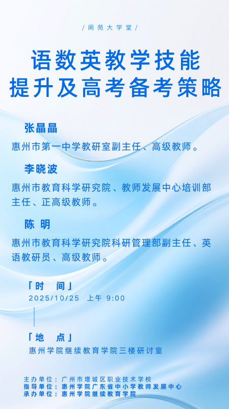 惠州市教育科学研究院科研管理部副主任、英语教研员、高级教师