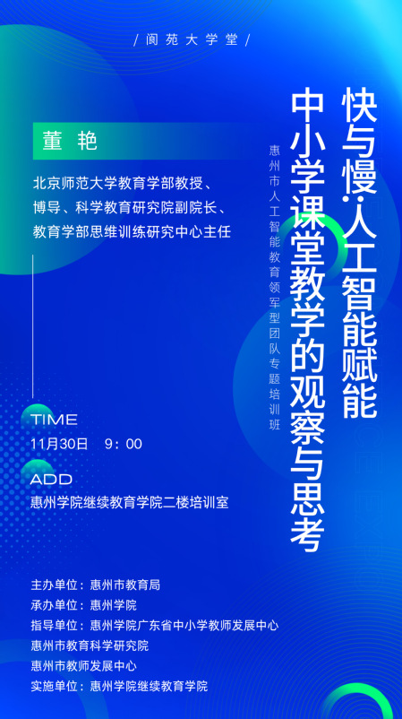 课程:《快与慢:人工智能赋能中小学课堂教学的观察与思考》